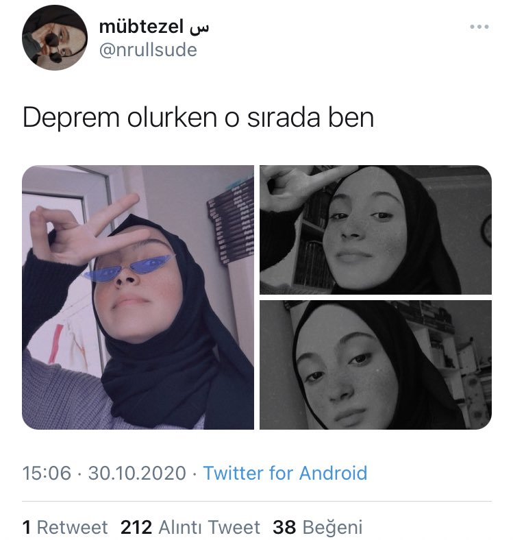 Twitter'da 'Mübtezel' kullanıcı adlı başka bir kadın ise, sevinçli fotoğraflarını paylaşarak 'Deprem olurken o sırada ben' yazdı. Gelen tepkilerin ardından 'Mübtezel' kullanıcı adlı genç kadın da hesabını kapattı.