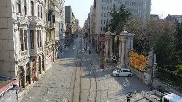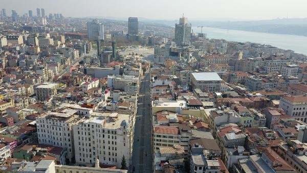 İstanbul'un sembol meydanı sessizliğe büründü. Taksim Meydanı ve İstiklal Caddesi'nde görevliler dışında kimse yer almıyor. Meydan ve caddedeki durum havadan görüntülendi.