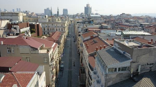 Sokağa çıkma yasağının ardından Taksim Meydanı ve İstiklal Caddesi havadan görüntülendi.