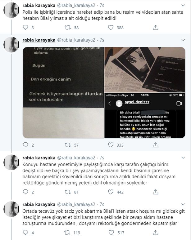 Rabia Karakaya'nın her yerden engellediği saplantılı tacizci, açtığı sahte hesaplardan, sağlık çalışanı kadını taciz etmeyi sürdürdü.