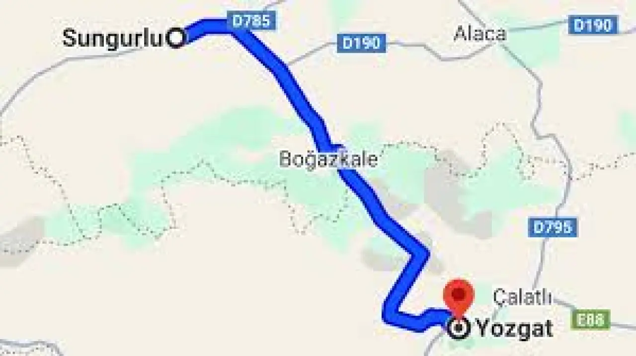 Google Haritalar ve karayolları verilerine göre Sungurlu ile Yozgat merkez arasındaki mesafe yaklaşık 72-73 kilometre. Güzergâh seçimine göre bu rakam 70 ile 75 km arasında değişkenlik gösterebiliyor. Özel aracıyla yolculuk yapmak isteyenler için en hızlı ve konforlu rota Sungurlu-Alaca-Yozgat hattı. Bu güzergâh hem yol kalitesi hem de ulaşım süresi açısından bölgenin en çok tercih edilen seçeneği.