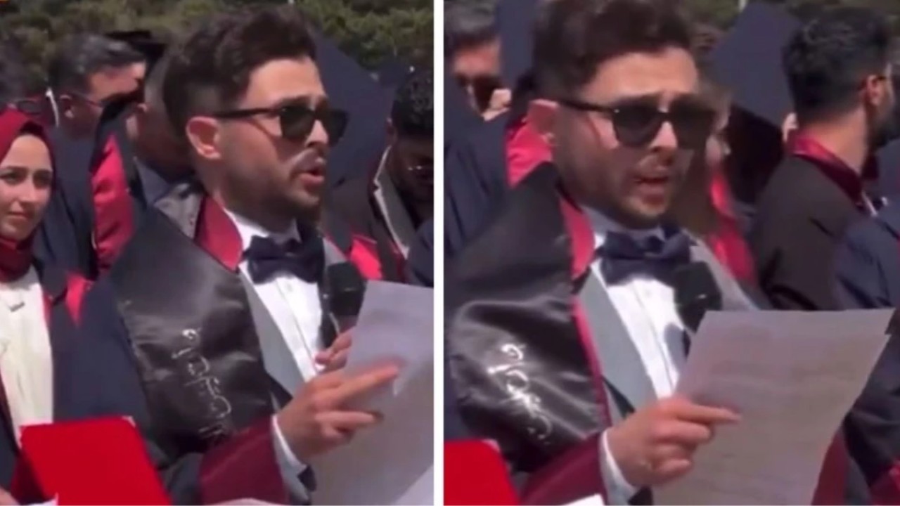 Atatürk Üniversitesi'nde eğitim hayatını tamamlayan öğrenciler için düzenlenen mezuniyet töreninde Suriyeli bir öğrencinin Arapça konuşma yapması sosyal medya kullanıcılarını ikiye böldü.