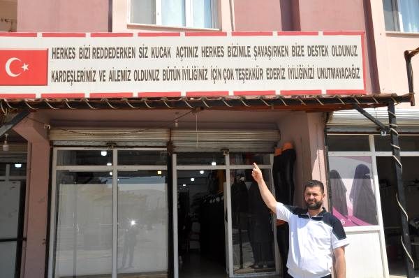 Hatay'ın Reyhanlı ilçesinde yaşayan Suriyeli terzi Muhammed Khaled Alhajeleh, iş yerine astığı tabela ile Türkiye'ye teşekkür etti.