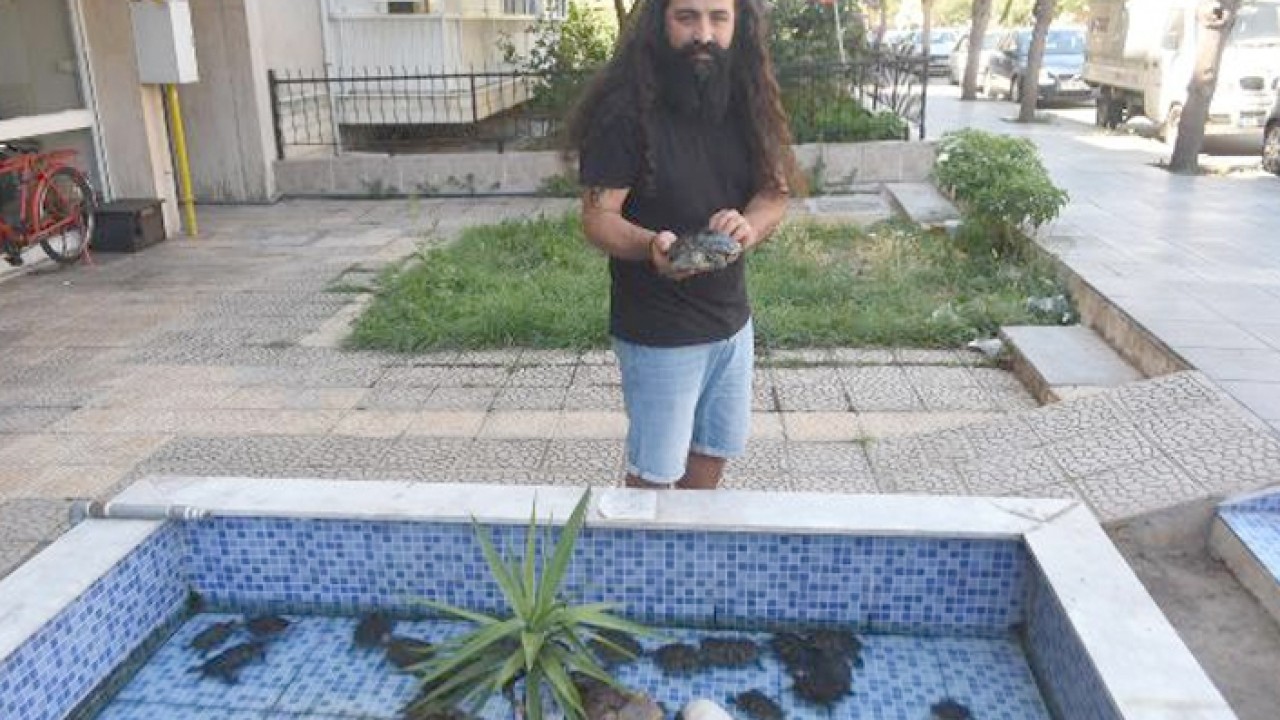 Karşıyaka ilçesinde fotoğrafçılık yapan Volkan Çakır, yaklaşık 20 yıl önce beslediği birkaç tane su kaplumbağası için işyerinin önüne süs havuzu yaptı. Havuzu minik bitki ve kütüklerle dolduran Çakır, suyunu sürekli temizleyerek kaplumbağalarını beslemeye başladı. Zaman içerisinde kaplumbağa sahiplenen ancak büyüdükten sonra evdeki yaşam alanı daralan bu canlılara bakamayan vatandaşlar, onları bu süs havuzuna bıraktı. Bu havuzda yıllar içinde 2 binden fazla kaplumbağa yetişti ve Çakır tarafından doğaya bırakıldı. Kaplumbağalara özenle bakan Çakır, iş yerinin önündeki havuzu onlara açmanın mutluluğunu yaşıyor. Mahalle sakinlerinin de ilgi odağı olan kaplumbağalar, haftanın her günü kaplumbağa yemi ve etle besleniyor.