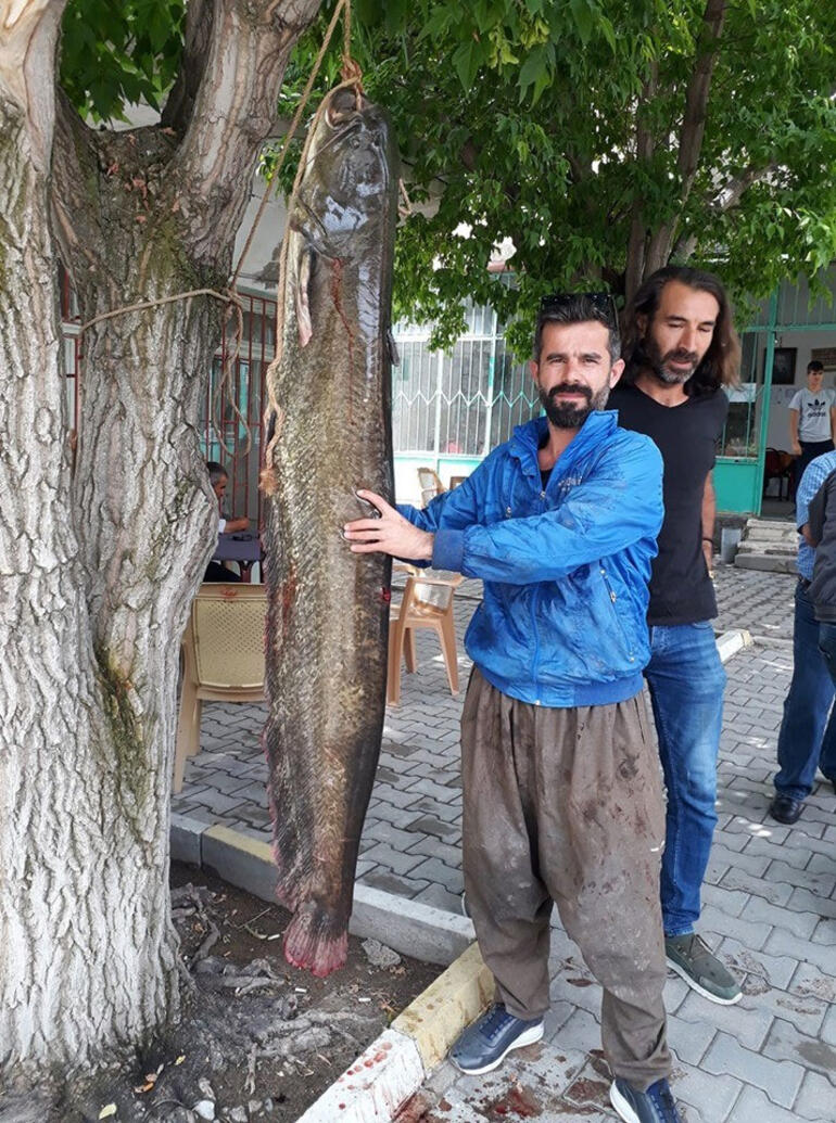 Nevşehir’in Gülşehir ilçesinde Kızılırmak’ta avlanan balıkçıların oltasına 2 metre boyunda yaklaşık 65 kilo ağırlığında yayın balığı takıldı.