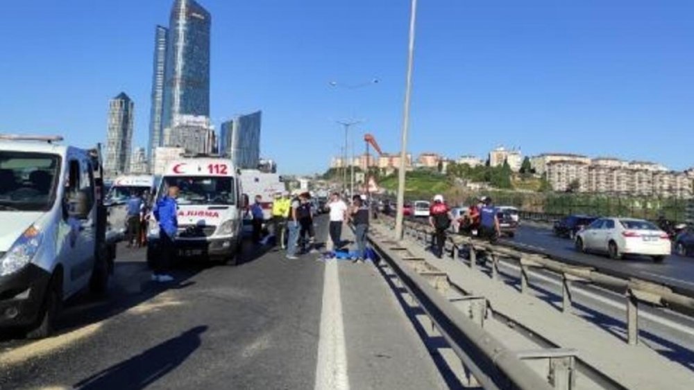İstanbul Kağıthane'de TEM Otoyolu Edirne yönünde meydana gelen feci kazada, Ukrayna plakalı lüks cip sağ şeritte aniden durdu.