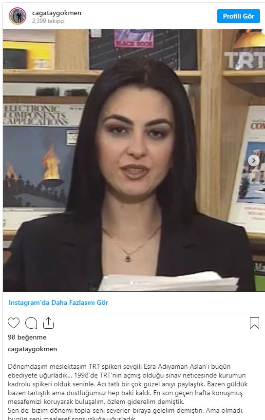 Uzun yıllardır TRT'de spikerlik yapan Çağatay Gökmen de Esra Adıyaman’ın ardından kişisel insatgram hesabından duygusal bir veda mesajı yayınladı.