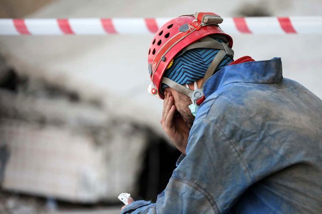 Arama-kurtarma çalışmalarının devam ettiği Doğanlar Apartmanı'nın enkazından bir anne, baba ve 2 yaşındaki çocuklarının cansız bedenleri çıkarıldı. Ailenin cansız bedenlerini enkazdan çıkaran Türkiye Mağaracılık Federasyonu Arama ve Kurtarma ekibinden Tahsin Kaymak, o an duygularına hakim olamadı. Kaymak, dinlenmeye geçtiği sırada gözyaşlarını tutamadı.