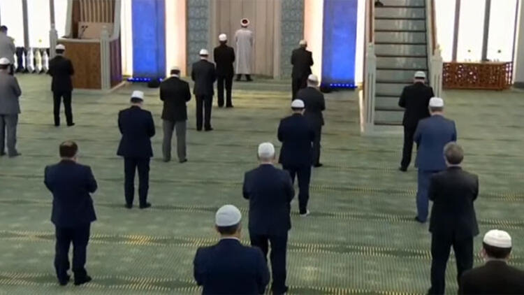 Cumhurbaşkanlığı Külliyesi'ndeki Beştepe Millet Camisi'nde bugün, Diyanet İşleri Başkanlığınca belirlenen az sayıda katılımla, salgına karşı tedbirler alınarak cuma namazı kılındı.