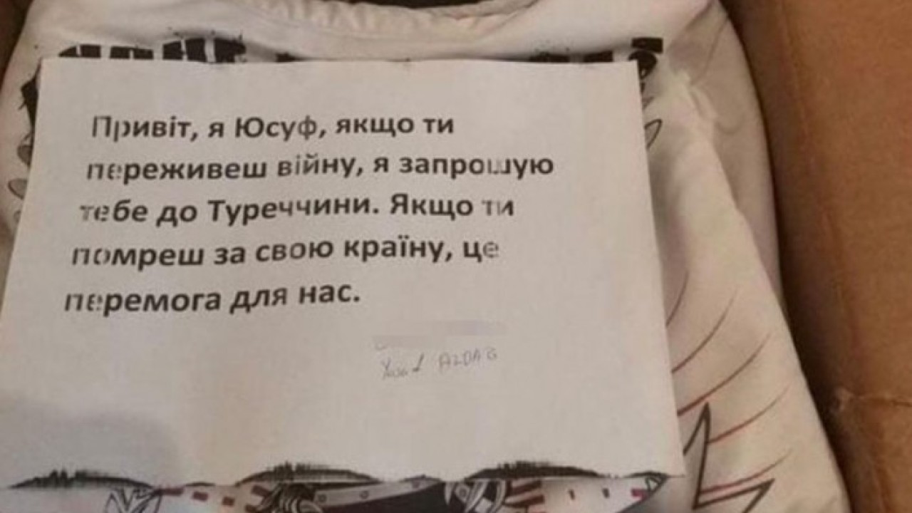 Duygulandıran mesajda, "Merhaba ben Yusuf. Eğer savaştan sonra hayatta kalırsan seni Türkiye'ye davet ediyorum. Ülken uğruna ölürsen bizim için bu bir onur olacaktır" ifadeleri yer aldı.