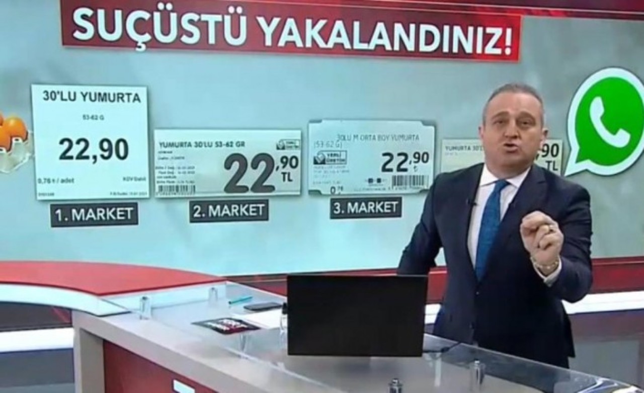 Özellikle son dönemde ayçiçek yağı ve yumurta fiyatlarındaki fahiş fiyat artışları yaşandı. TGRT Ana Haber'in sunucusu Ekrem Açıkel de konuyu bültenine taşıdı. Açıkel, zincir marketlerdeki yumurta fiyatlarındaki artışa ve etiketlerin aynı oluşuna dikkat çekti.