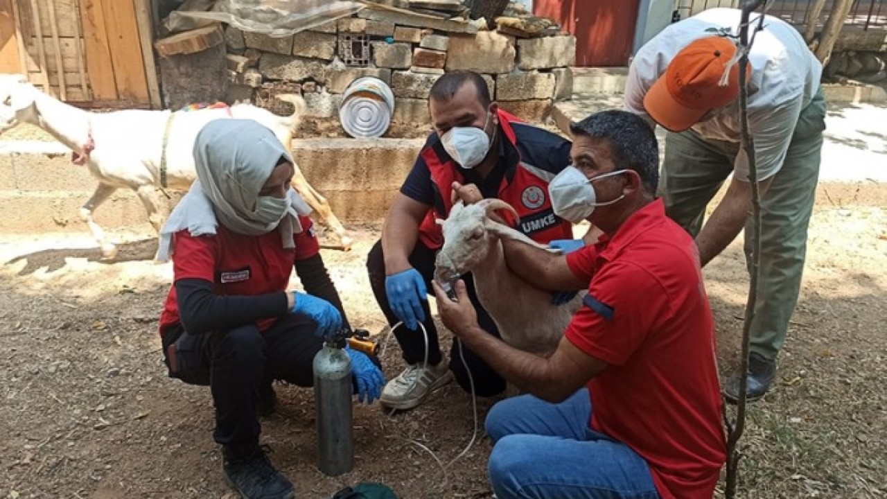 Keçilere, UMKE ekibinde görev yapan ve aynı zamanda veteriner sağlık teknikerleri olan Alparslan Ercan ile Turan Sevim tarafından müdahale edildi.