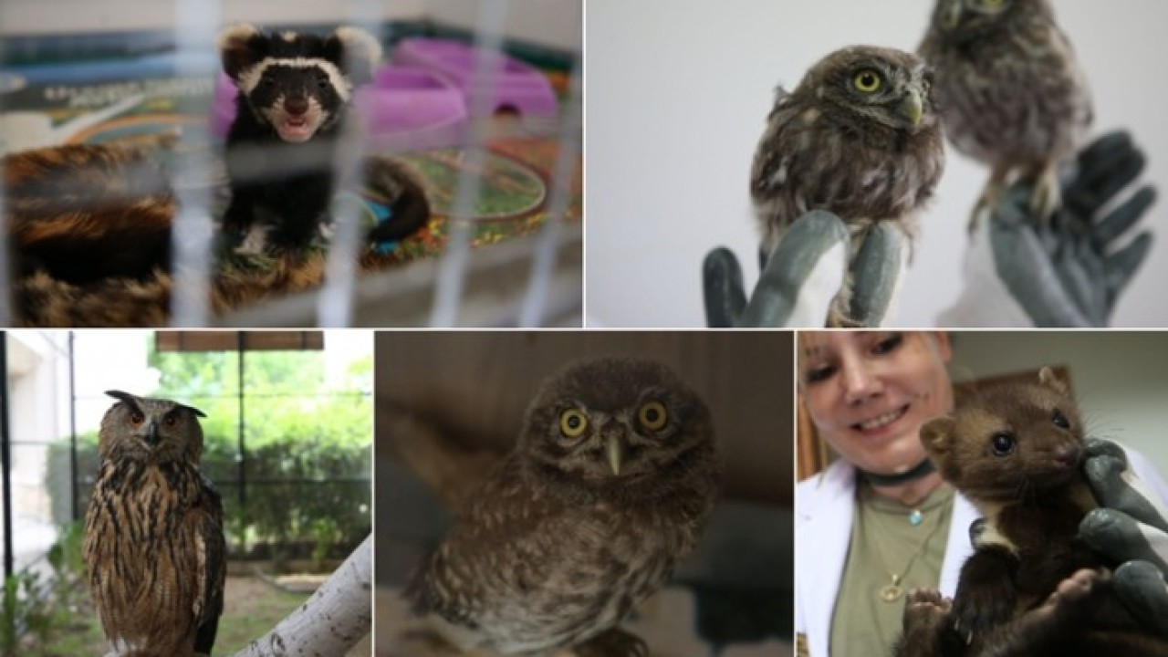 Kukumavdan (küçük baykuş türü) ağaçtan düşerek kanadı kırılan yavru kargalara, puhudan alaca sansara, atmacadan kızıl akbabaya kadar yüzlerce hayvan, DKMP uzmanlarınca tedavi altına alınıyor.