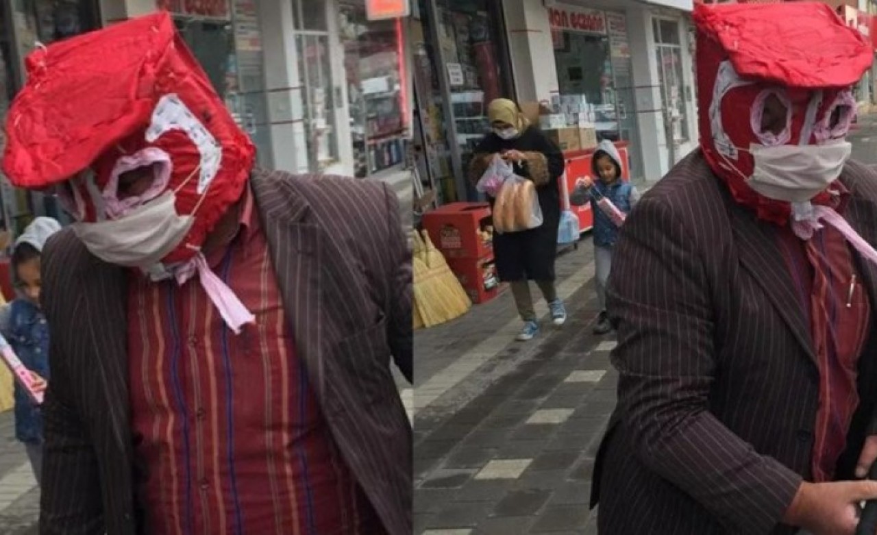 Vatandaş, "İnsanların çoğu gereksiz yere işi olmadığı hallerde dahi çarşıda, pazarda dolaşıyor. Bizler bu korona belasından kurtulmak için önlem almalıyız, kendimizi ve ailemizi tüm toplumu korumak için mümkün olduğunca kalabalık ortamlardan uzak olmalı ve dışarı çıkarken de mutlaka mesafeye uymalı ve maskemizi takmalıyız. Ben kendimce daha iyi izole olacağımı düşünerek böyle bir çare buldum ve kendime bu yüz maskesini yaparak koronadan bir kat daha fazla korunuyorum" dedi.