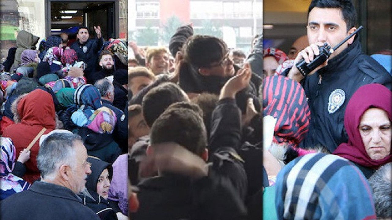 İçeride ve dışarda izdiham nedeniyle iş yeri sahipleri, polisten yardım istedi. Bunun üzerine dükkan önüne polis ekipleri sevk edildi.